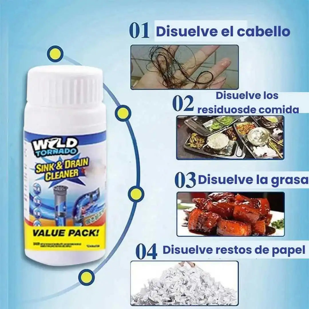 🔥 Wild Tornado elimina la suciedad en minutos, disuelve grasa, restos de comida y elimina bacterias que causan malos olores. Olvídate de atascos y drenajes sucios. ¡Funciona solo y sin esfuerzo! 🚀